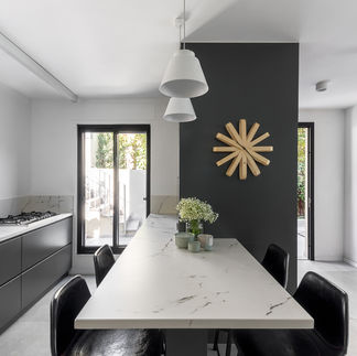 בתכנון ובבחירת חומרי הגמר נעשתה מחשבה רבה ושילוב של מגוון צבעים וטקסטורות, אשר יצרו לנו את אוירה המאוד נקייה ונעימה בבית .